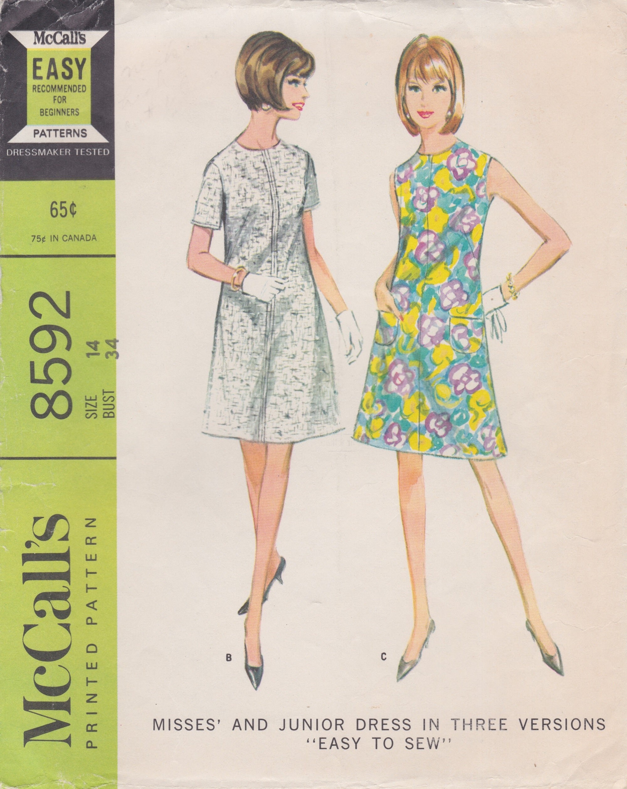 Mccalls 8592 Vintage 1960s Sewing Pattern Dress Size 14 Etsy Australia